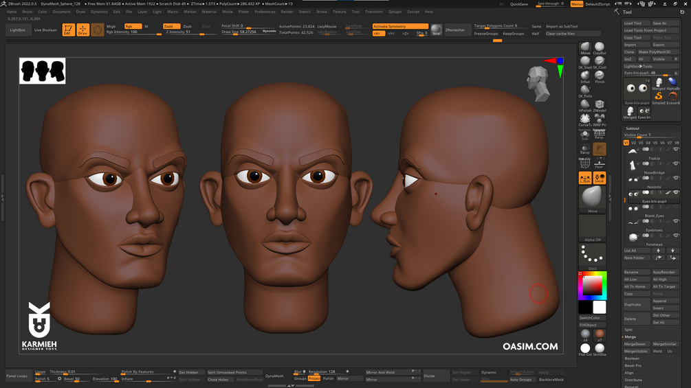 This is the base mesh head that I use for my sculpts, I kept everything separated and really simple to adjust and edit.