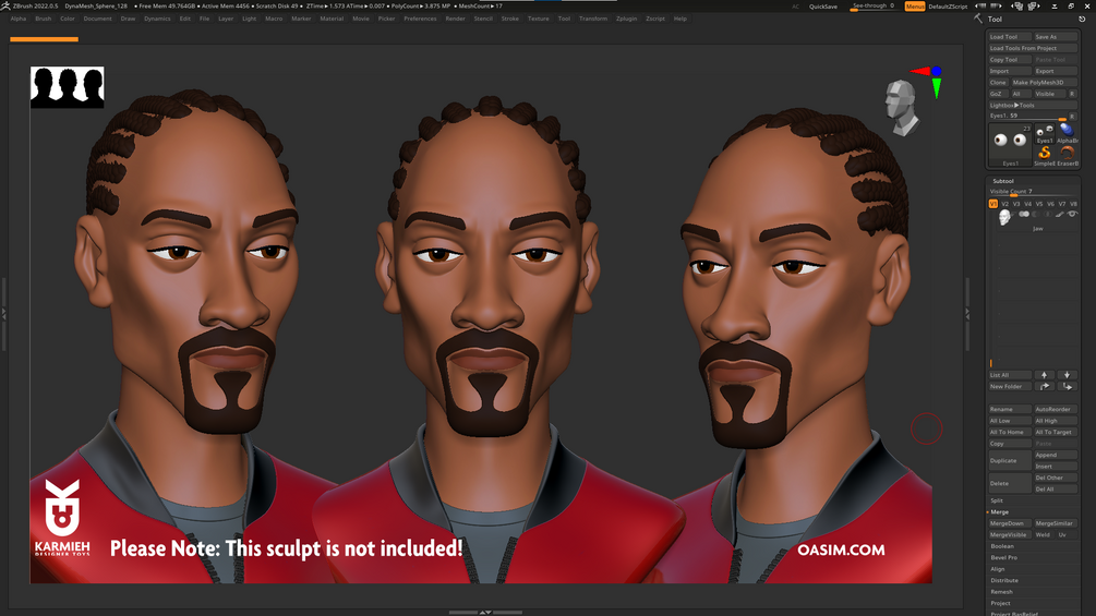This is the base mesh head that I use for my sculpts, I kept everything separated and really simple to adjust and edit.