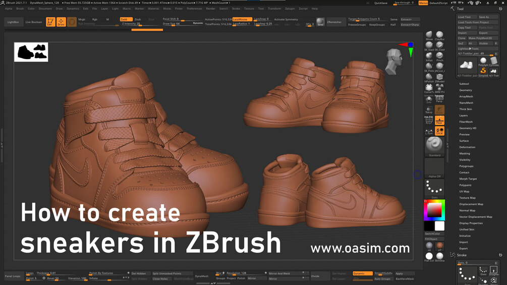 Over two hours of in-depth sneaker sculpting using ZBrush